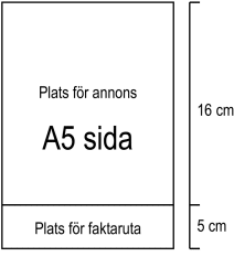 Tanken är att Ni skall utforma en annons som på ett bra sätt presenterar Ert företag. Annonsen skall uppta hela sidan med plats för en fem centimeter hög faktaruta i sidans underkant. En mer detaljerad beskrivning ges i figuren nedan.
